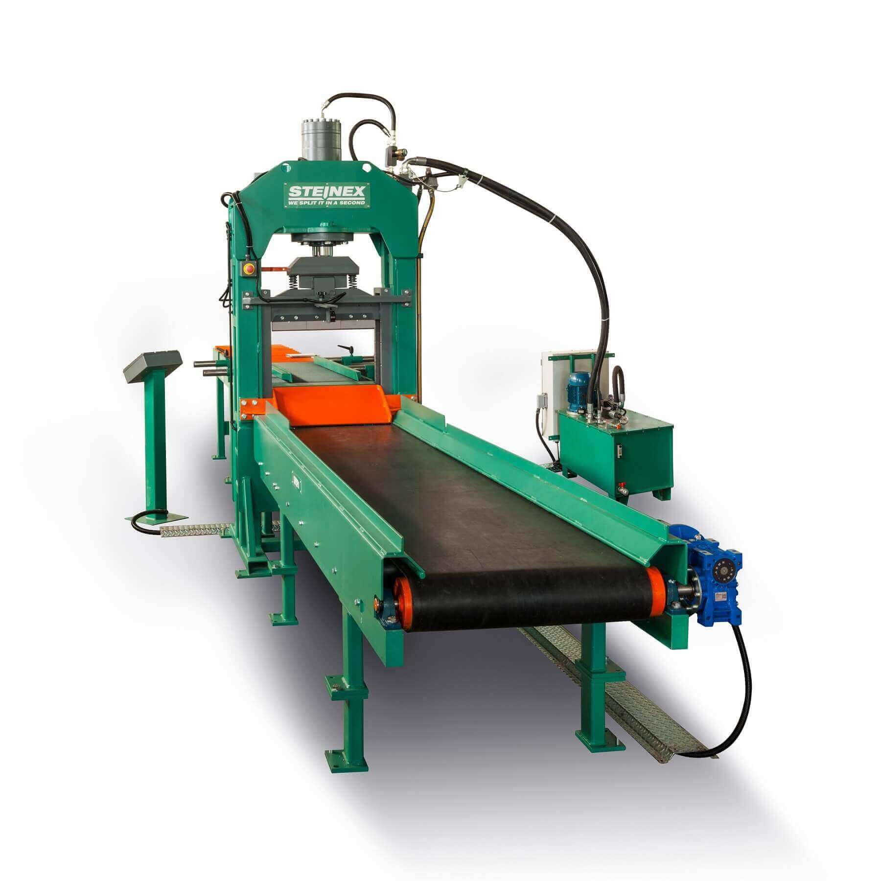 La Linea semi-automatica 1280 è composta di una potente macchina Broadway con 160 tonnellate di pressione che consente di spaccare pezzi con superficie regolare di larghezza fino a 1280 mm (la luce di passaggio è di 1430 mm) e spessore fino a 400 mm. Le lame sono dotate del sistema di adattamento dei singoli utensili tipo 2RB.